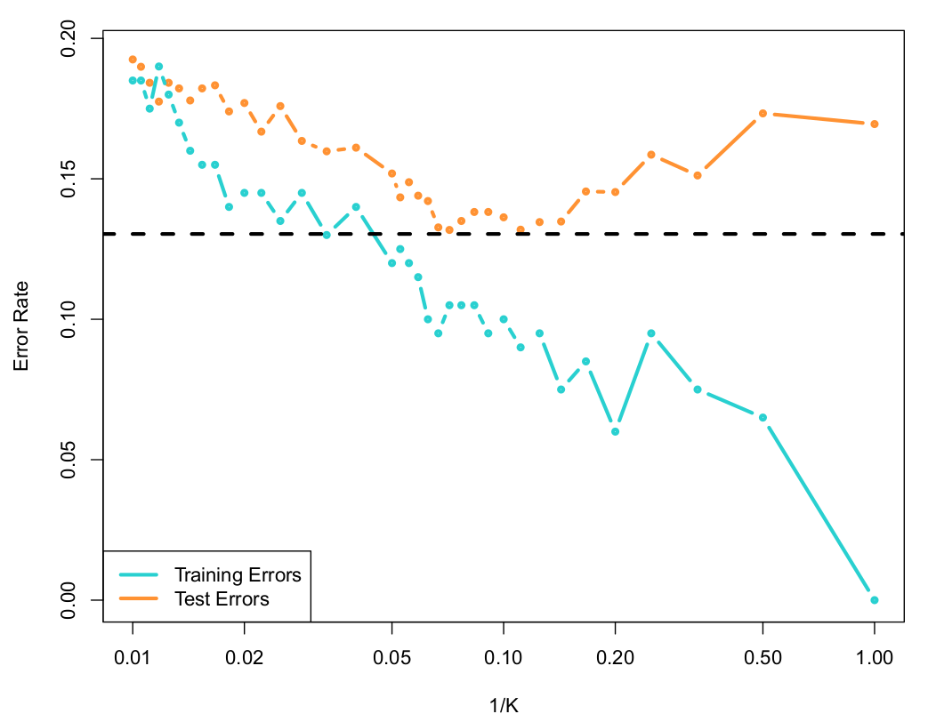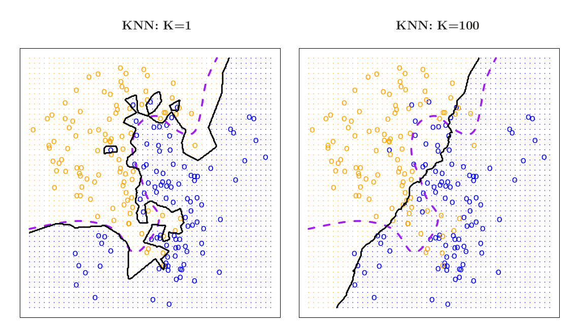 Effect of k on decision boundaryAs k increases, the model becomes less flexible.